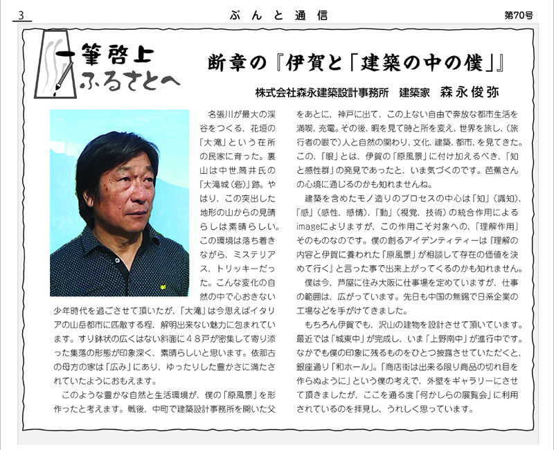 「伊賀市都市文化協会ぶんと通信」 第70号 平成22年6月15日掲載 記事