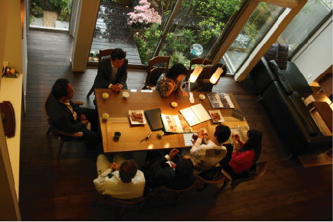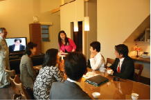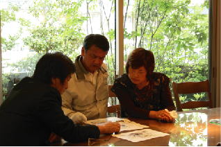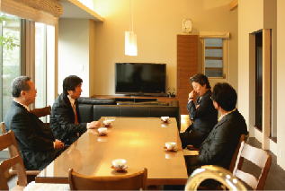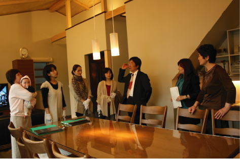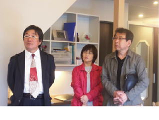 僕にできることは協力させて下さい。又、トピックスでお伝えする予定ですが、古い旧家のリフォームをされるK夫婦が見に来られました。会場の大テーブルを借りて、リフォームプランの説明をさせていただきました。実際、僕が造った空間での説明なので、解りやすいとのことでした。 以前、設計させていただいた、「大仙の家」のクライアント夫婦。