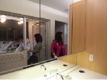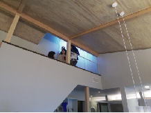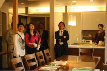 洗面所、お風呂、庭が一体になったリゾート空間。詳しく見られる見学者の方は、こんなところでも陏分時間をかけて見ておられます。 リビングを見下ろす2階のアルコーブ部。この中に、24時間冷暖房の機械が据えられていますが、みなさん、なかなか降りて来られません。 地元の主婦の方々がグループでお見えになりました。
