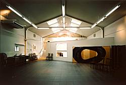 | 氏の作品は300号くらいと大きく、活動の拠点もアメリカなど多岐にわたるためスペースも大きな空間が必要であった。 |