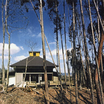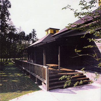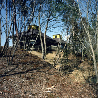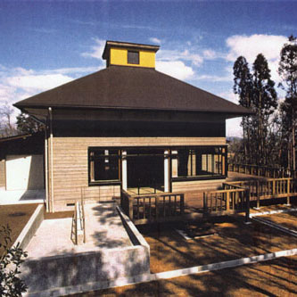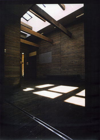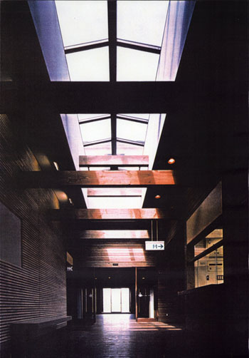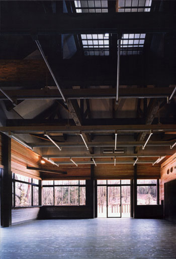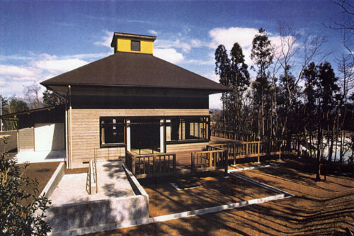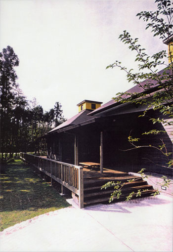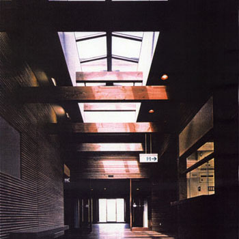 建物の主要部分では、上部の光と影の関係に加えて、機能空間の物理的大小によって、天井の高低差に変化をつけ、適度な心理的な緊張感を持たせている。開口部はデッキを媒体に、必要な景観と結接している。