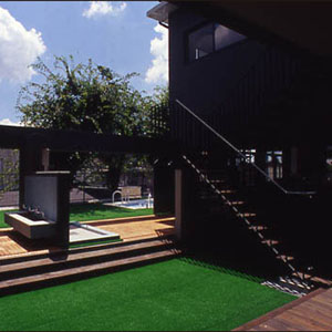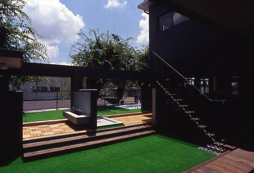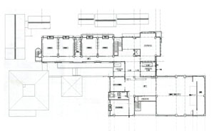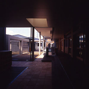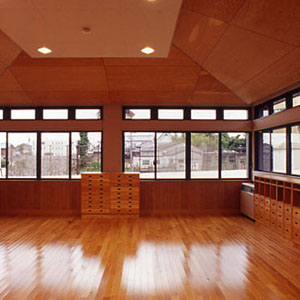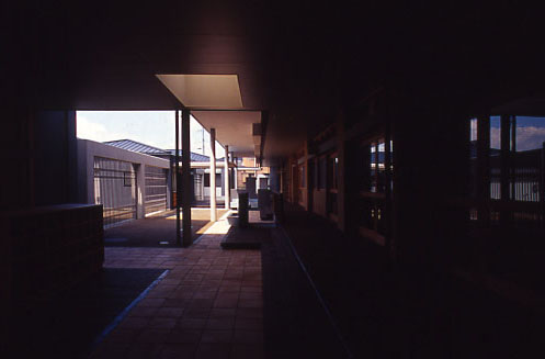 駐車場より西に向かって、園児や職員、父兄の主要な外部通路を「コンコース」と呼び東西方向の導線とする。一方、正門から玄関への軸線はプールや三本のケヤキの大樹に至る視覚空間を得ている。