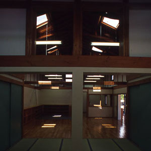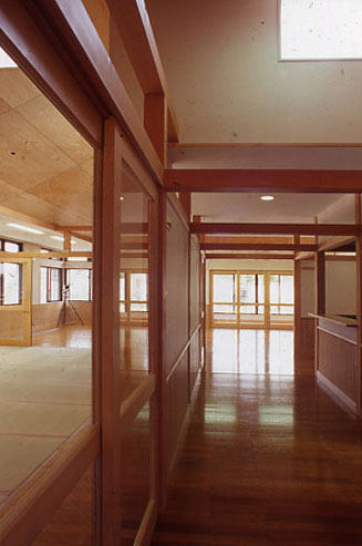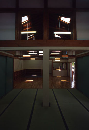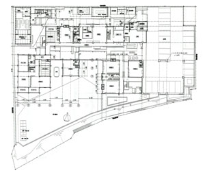 この二軸がコンコースの東寄りで十字に交叉し、この建物のあらゆる面を解決している。このような十字コンコースは、重要な導線であるばかりか、光庭であり、遊び場であり、外部と内部をつないでいる「縁」として日本型のコミュニケーションの空間と考えるのが妥当だろう。