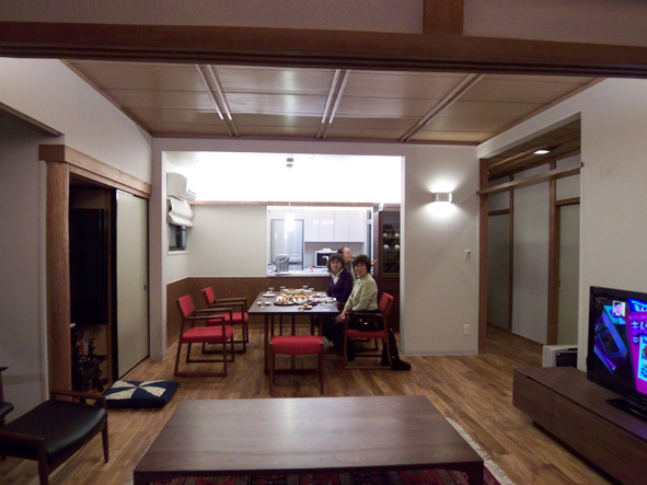 南向きの日当たりの良い和室と日のあたらなかったキッチンをつなげて、広々とした明るいLDKになり、皆が楽しく集える空間になりました。