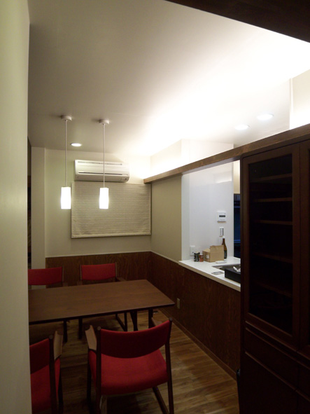 照明にもこだわり建築化照明のバウンド光で包まれた上質な空間になっています。