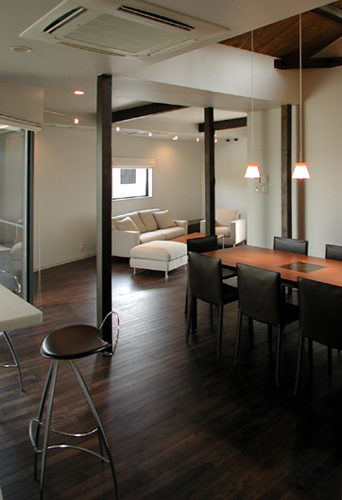 ダイニングキッチン、応接、元店舗部をつなげることによって、流れるような広々としたLDKを作り上げます。