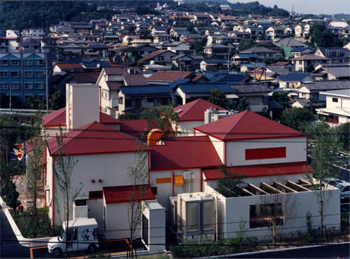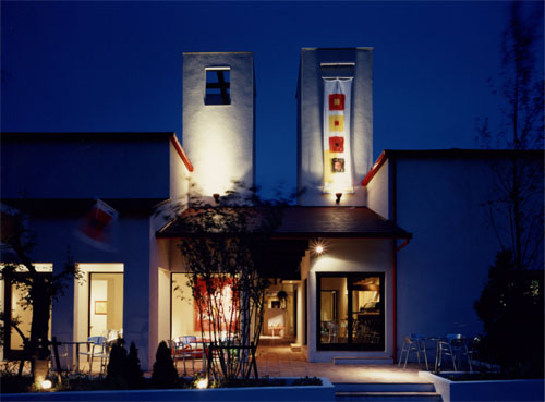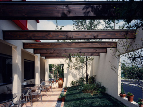 西宮市、苦楽園の空地の有効利用をはかった建物。本来、中層の建築が計画されるが、オーナーの強い指向性のもとに、スペイン料理とスペインのデザインによる生活用品の販売店を企画した。