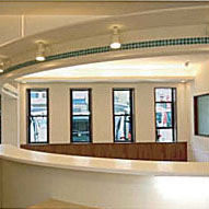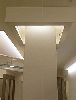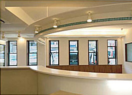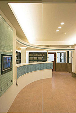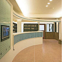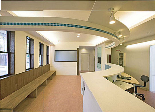 ファサード1階、待合などは「暖かさ」「やわらかさ」「高い技術力」「現代的感覚」と相矛盾するかのコンセプトをアイディンティ化した。
