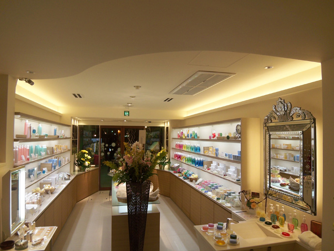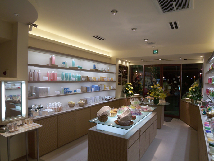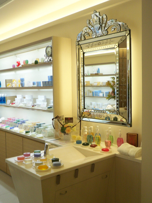 透明石けんの専門店、「神戸トランスパラン」の改装工事が完成し、2013年1月18日にリニューアルオープンしました。 ザインコンセプトはナチュラルで落ち着きある空間です。壁、天井には漆喰を塗り、什器は既存を流用しながら、木質材を表面に貼っています。また、間接照明により空間の豊かさを演出しています。 商品の陳列も終わり、カラフルな石けんが並んで華やかになりました。 ぜひ、ご来店を。